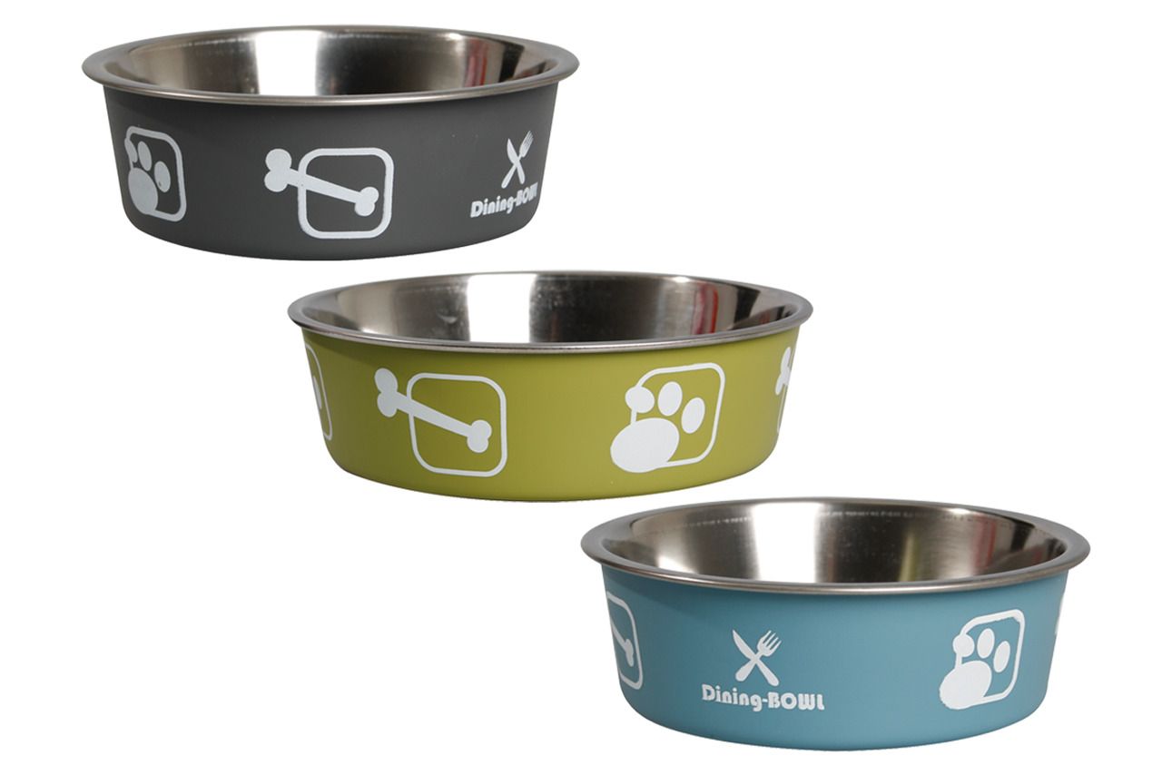 Der Edelstahl Futternapf Kena von Karlie ist in einem schönen Knochen und Pfotendesign und in den Farben grau, grün und blau in verschiedenen Größen erhältlich.