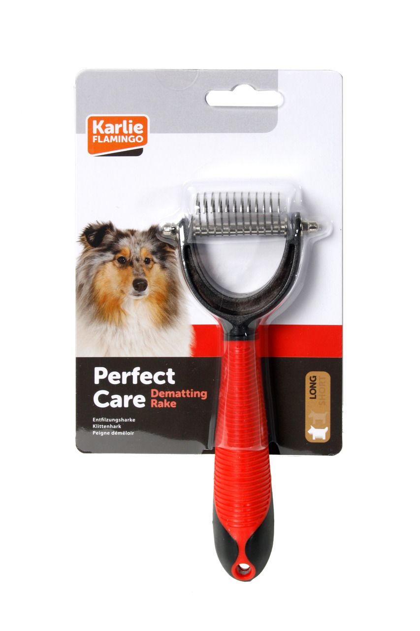 Durch die Benutzung der Entfilzungsharke können Sie einfach dicke Knoten durchtrennen und das Haar Ihres Hundes entfilzen. Je weniger Knoten desto feingezahnter die Harke, die Sie benutzen können. Wenn Sie die Entfilzungsharke benutzt haben, fällt das Bürsten oder Kämmen des Fells Ihres Hundes leicht. Reinigen Sie den Entfilzungskamm regelmäßig mit Wasser und einer antiseptischen Lösung wie Dettol oder Barbicide, um das Bakterienwachstum zu verhindern. Lassen Sie ihn dann gut trocknen! Geeignet für Hunderassen mit mittellangem und langem Fell. Die Entfilzungsharke hat einen Griff und Rundklingen. Maße: Länge 8.5 cm B: 7 cm, Farbe: rot-schwarz
