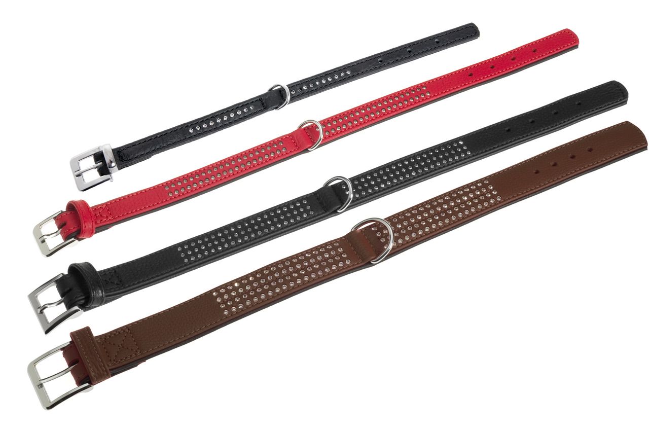 Das Karlie Hundehalsband Vintage ist aus Nappaleder und einreihigen Strasssteinen besetzt. Das Halsband ist hochwertig verarbeitet mit verchromten Beschlägen, abgenähten Nähten und Riegel. Das Karlie Halsband Vintage ist in den Farben rot und schwarz erhältlich. Die Breite beträgt 10 mm. Das rote Halsband ist abbildungsähnlich (einreihig mit Strass besetzt). Das Hundehalsband ist passend zur Hundeführleine Vintage.