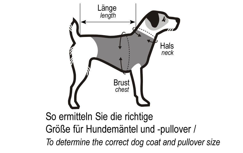 Der Hundemantel ist maschinenwaschbar bei 30° C und in den Größen (Rückenlänge) 30 cm, 35 cm und 40 cm erhältlich. Nur solange Vorrat reicht. Größenauswahl per Drop&Down Pfeil möglich.
