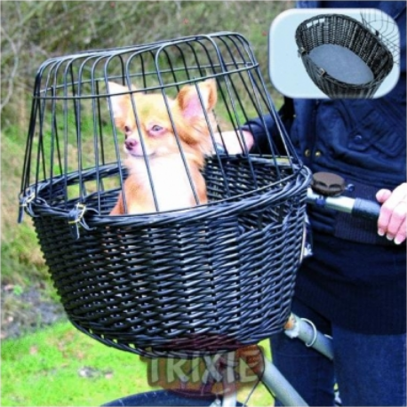 Der Trixie Fahrradkorb mit Gitter ist besonders geeignet für kleine lebhafte Hunde, die beim Fahrradfahren gerne herausspringen. Dieser Fahrradkorb lässt sich problemlos durch 2 Bügel am Lenker einhängen. Durch 2 Griffauslassungen an den Seiten, kann man den Korb problemlos vom Lenker abnehmen. Das Korbgitter wird durch 2 Schnallen befestigt und sorgt somit für einen sicheren Halt am Korb. Das mitgelieferte Kissen in Veloursleder Optik kann bis 30 Grad Handwäsche gewaschen werden. Maße: 50 x 41 x 35 cm, Farbe: schwarz. Der Fahrradkorb ist zum Einhängen an die Lenkstange. Material: Weide. Kissen in Veloursleder Optik max. Belastbarkeit 8 kg